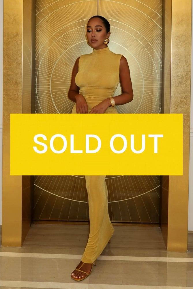 MUSTARD MOCK NECK RUCHED MAXI DRESS (XS)